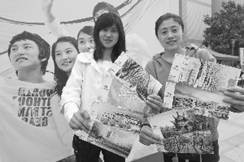 大学生展示南邮手绘明信片 现代快报记者 路军 摄