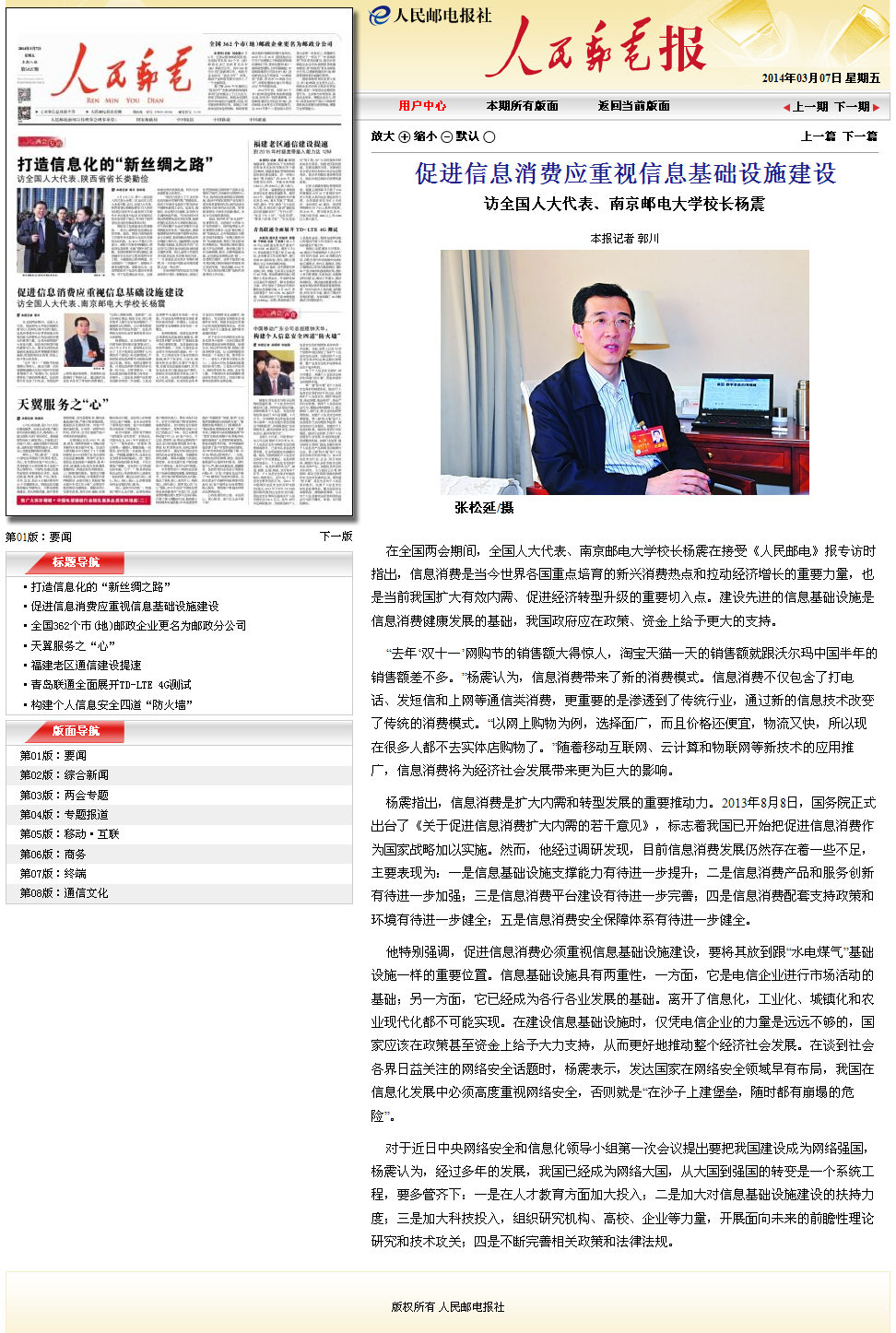 【人民邮电报】促进信息消费应重视信息基础设施建设