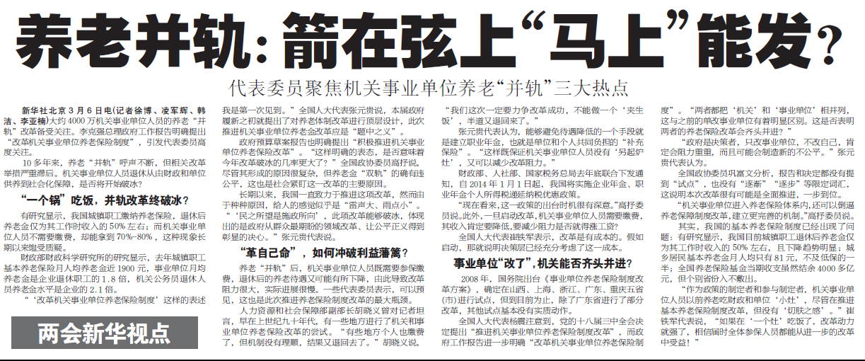 【新华每日电讯】养老并轨:箭在弦上“马上”能发?