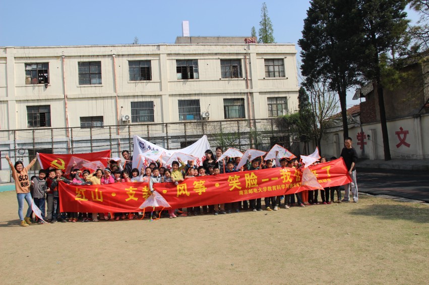 4月2日,南京邮电大学教育科学与技术学院分团委、院研会、学生会走进红山小学支教,以“红山•支教•风筝•笑脸——我们来了”为标语,大力宣扬了“走下网络、走出教室、走进操场”创新性实践教育模式。