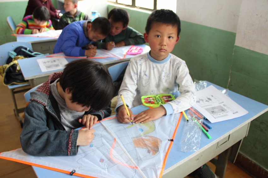 本次支教活动紧紧围绕“走进红山,放飞梦想”这一主题,其活动内容通过学生课堂实践活动,激发小学生创造性和唤起小学生童真的心灵。教室内,每两位小学生携手用彩笔在白板的风筝上勾画出各种图案。小朋友发挥他们发散性思维,无拘无束地勾勒美图,大概二十分钟后,每个风筝被绘画地五颜六色,绚丽多彩。最后,小学生在老师们的带动下,拿着漂亮的风筝走进了宽敞的操场。个个炫彩的风筝如同小孩欢快的心情一样,自由奔放地飞翔在天空中。小学生拉着风筝尽情地在操场上奔跑,此刻他们已经不顾及后面的风筝是否在天空中飞翔,开心已经充满了小学生的心涧。