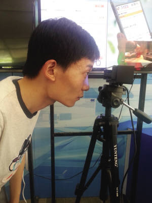 “我在采集自己的虹膜信息。”南邮通院的研究生王涛正在用眼睛近距离凝视一个机器。他告诉记者,这是虹膜采集器,眼睛对准它,它可以提取人眼虹膜信息,并转化为一串数字。据介绍,虹膜是眼睛构造的一部分,有自动调节瞳孔大小的作用,每个人的虹膜都不一样。