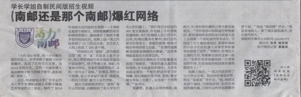 【扬子晚报】《南邮还是那个南邮》爆红网络