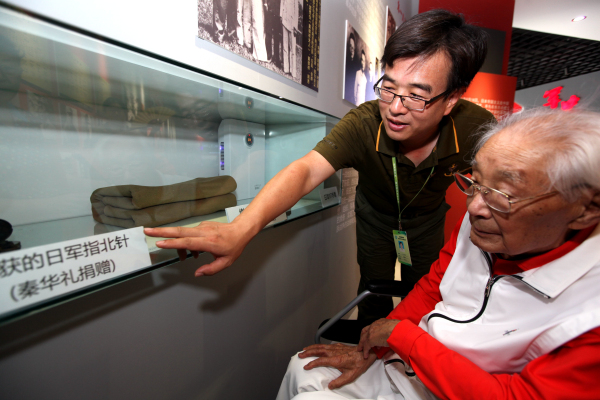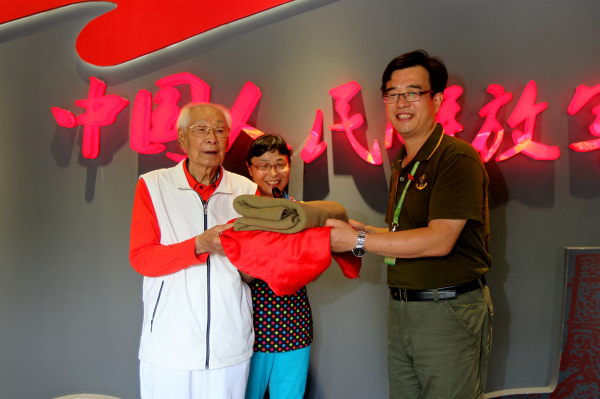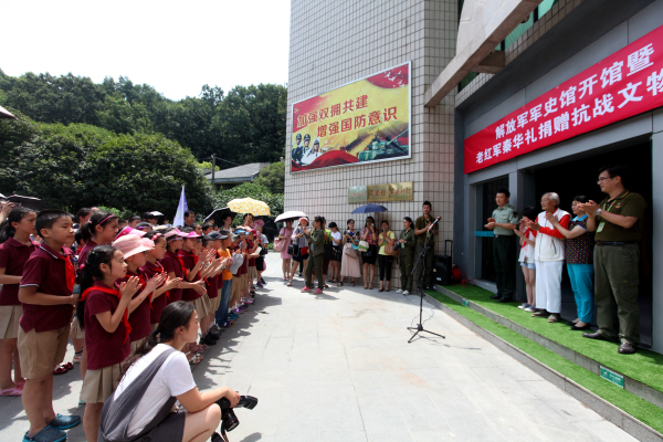 今年是纪念全民族抗战爆发80周年。为支持开展国防教育,弘扬爱国热情,7月18日上午,在南京国防园“中国人民解放军军史馆”开馆仪式上,105岁老红军、南京邮电学院首任党委书记兼院长秦华礼向南京国防园慷慨捐赠珍藏了七十多年的抗战文物两件,并为军史馆开馆揭幕。