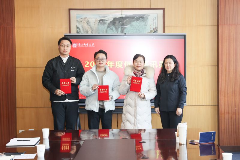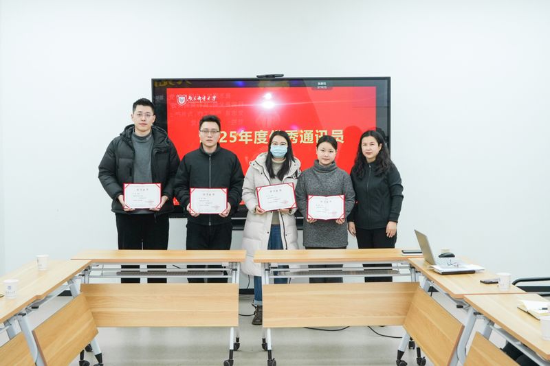 会议对2025年度在学校新闻宣传工作中表现突出的个人予以表彰,肯定他们过去一年在学校新闻宣传工作中所作的积极贡献。严英为荣获“优秀通讯员”称号的老师颁发荣誉证书。